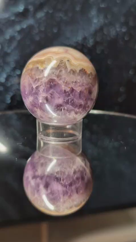 Naturbelassene Chevron-Amethyst Kugel in kristallklarer Form, ideal als