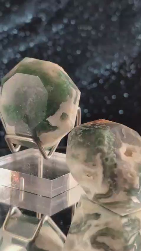Durch den präzisen Diamantschliff wirkt dieser Moosachat besonders klar und präsent – ein kraftvolles Einzelstück für Menschen, die Ruhe und Naturverbundenheit bewusst in ihr Zuhause holen möchten.